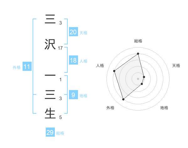 三沢 一三生さんの総格は29画の4点