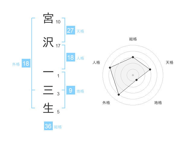 宮沢 一三生さんを姓名の画数から五運を鑑定