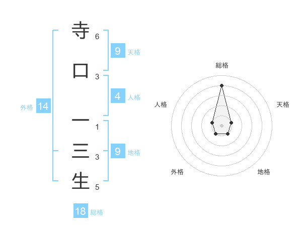 寺口 一三生さんの総格は18画の4点!