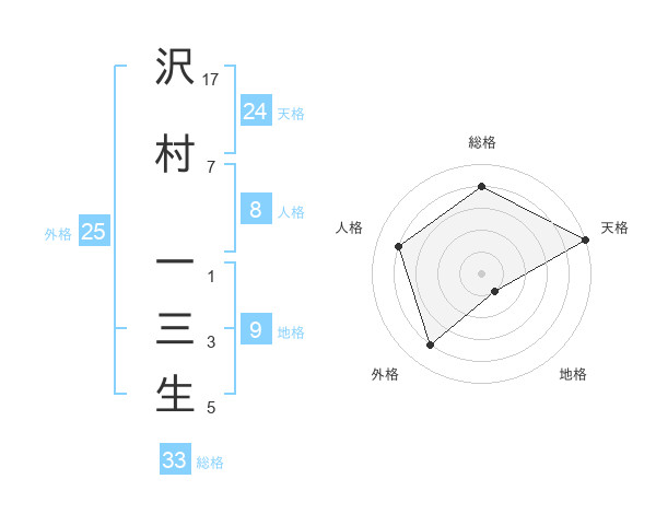 沢村 一三生さんを姓名の画数から五運を鑑定