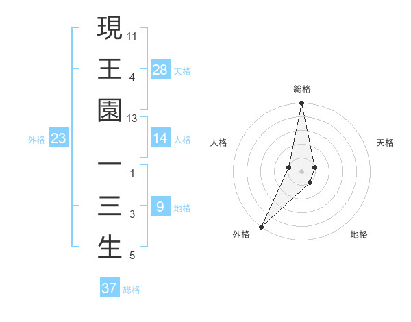 現王園 一三生さんの総格は37画の5点!