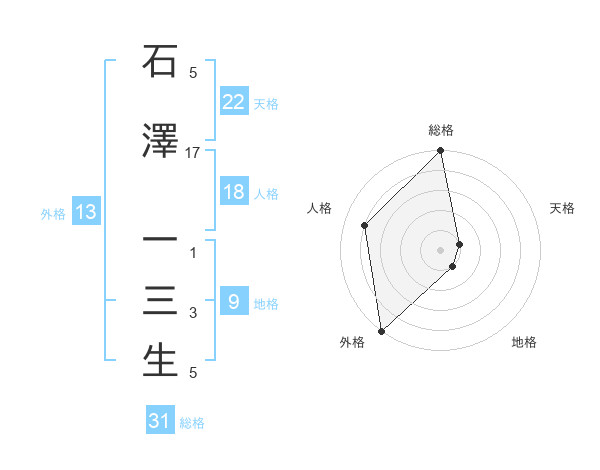 石澤 一三生さんを姓名の画数から五運を鑑定