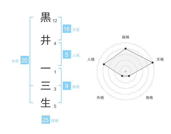 黒井 一三生さんの総格は25画の4点!