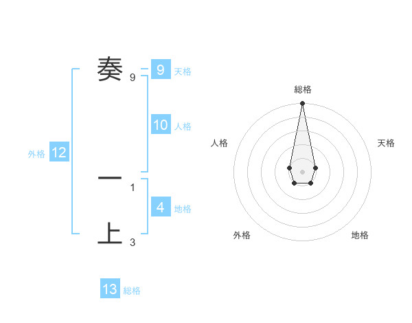 奏 一上さんの総格は13画の5点!