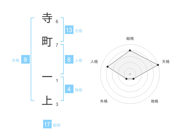 寺町 一上さんの総格は17画の4点!
