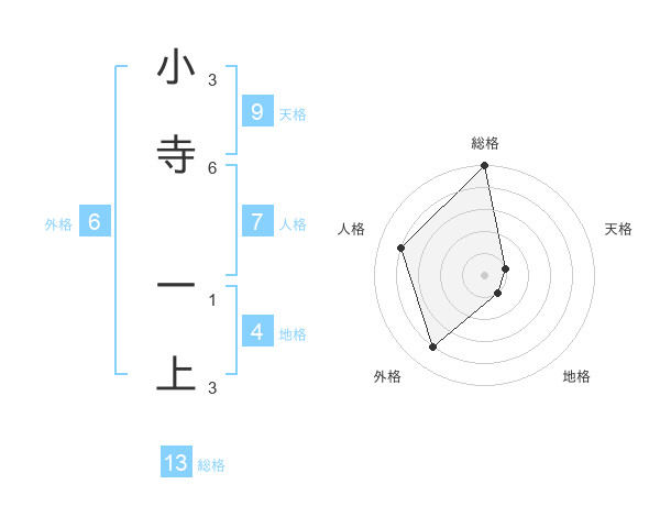 小寺 一上さんの総格は13画の5点!