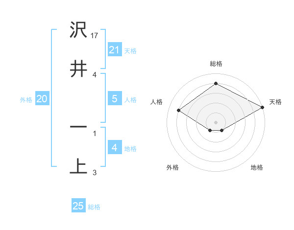 沢井 一上さんの天格は21画の5点!
