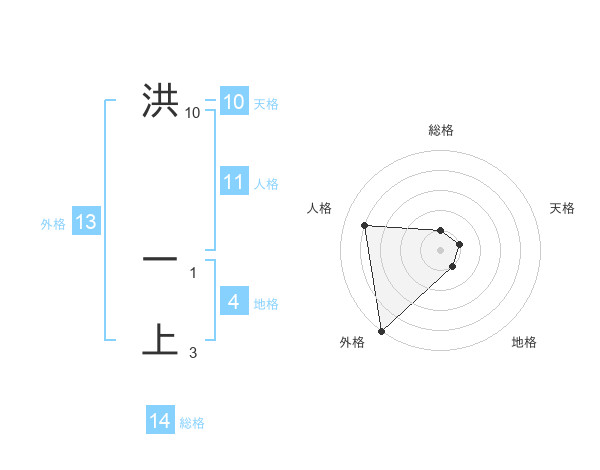 洪 一上さんの天格は10画の1点!