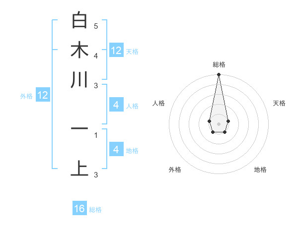 白木川 一上さんの総格は16画の5点!