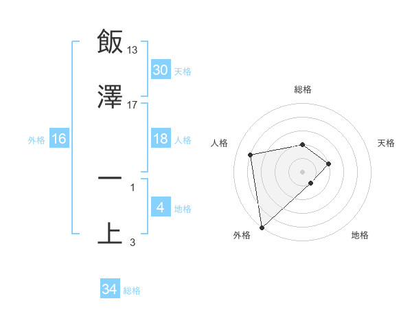 飯澤 一上さんの総格は34画の2点!