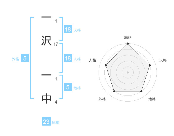 一沢 一中さんの総格は23画の5点!