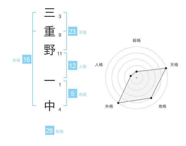 三重野 一中さんの外格は16画の5点!