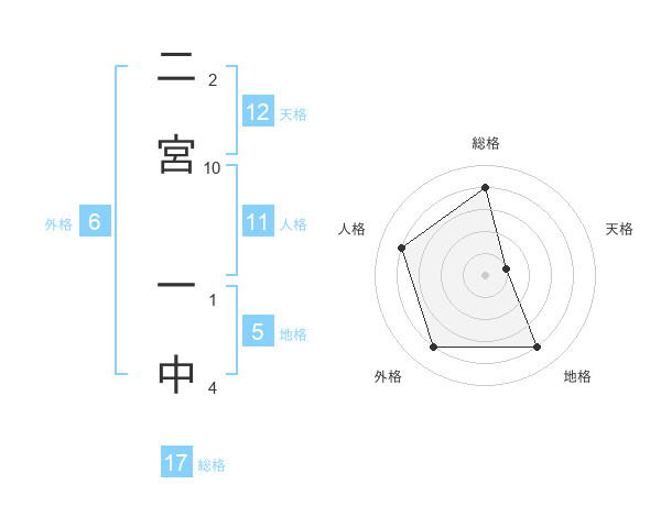 二宮 一中さんの天格は12画の1点!