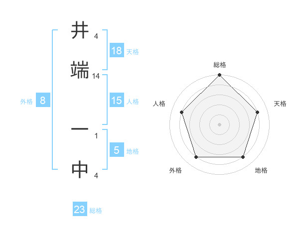 井端 一中さんの総格は23画の5点!