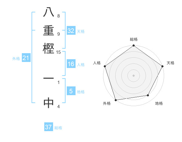 八重樫 一中さんを姓名の画数から五運を鑑定