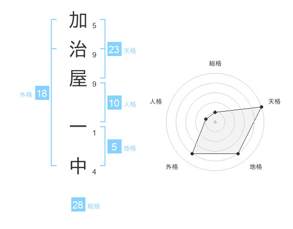 加治屋 一中さんを姓名の画数から五運を鑑定