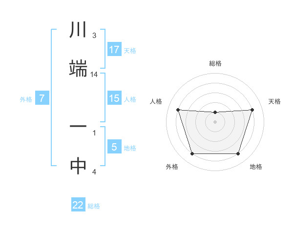 川端 一中さんの総格は22画の1点!