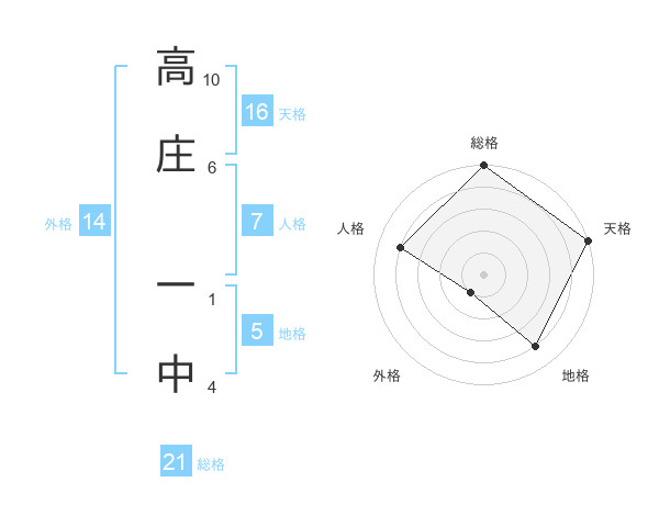 高庄 一中さんの総格は21画の5点!
