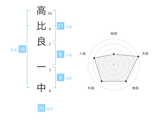 高比良 一中さんの天格は21画の5点!