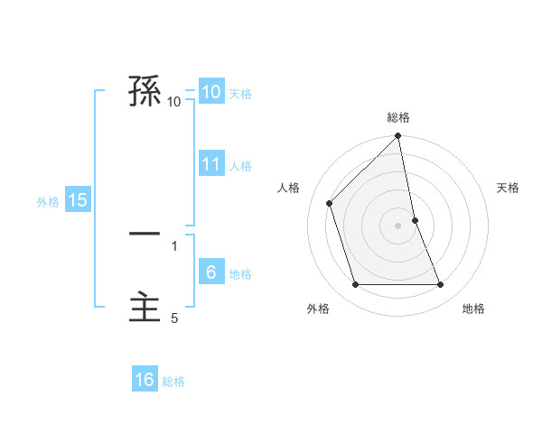 孫 一主さんの総格は16画の5点!