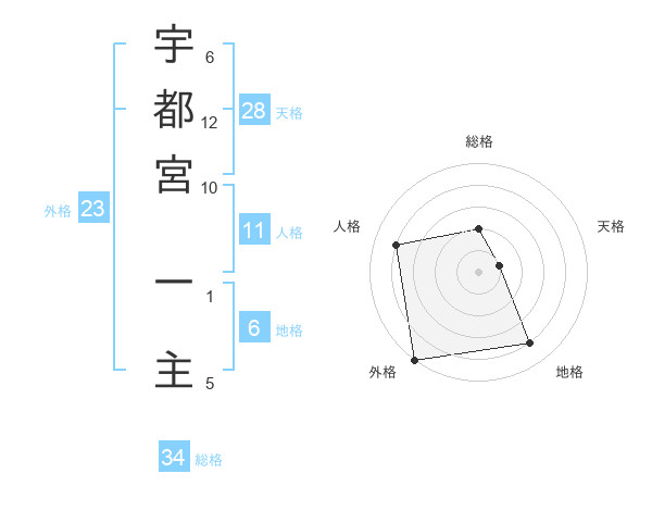 宇都宮 一主さんを姓名の画数から五運を鑑定