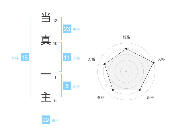当真 一主さんの天格は23画の5点
