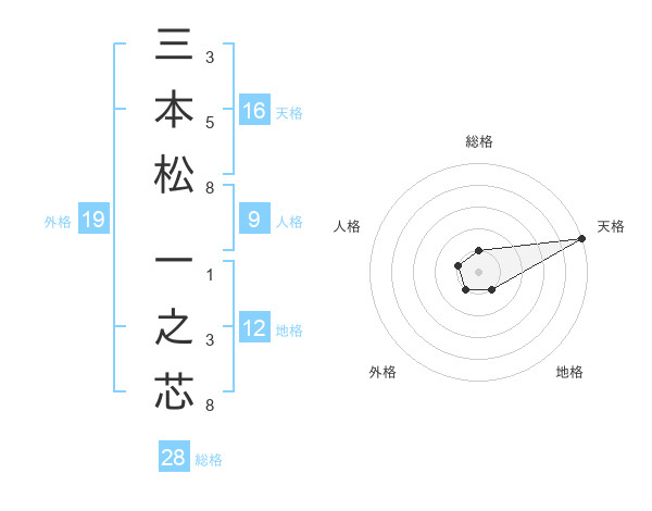 三本松 一之芯さんを姓名の画数から五運を鑑定