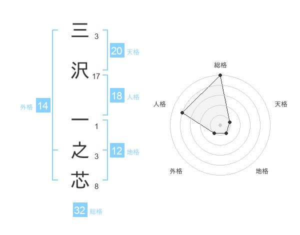 三沢 一之芯さんを姓名の画数から五運を鑑定
