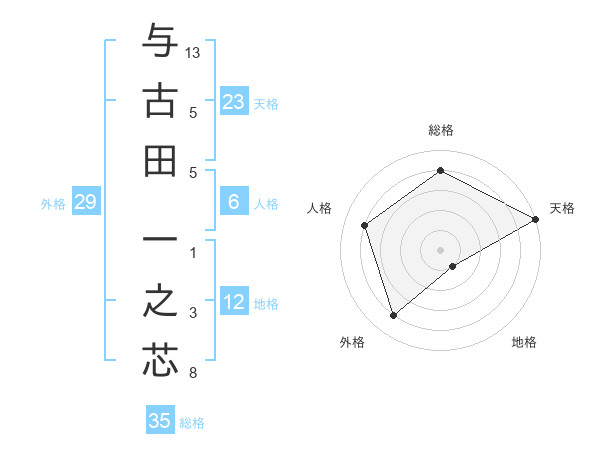 与古田 一之芯さんを姓名の画数から五運を鑑定