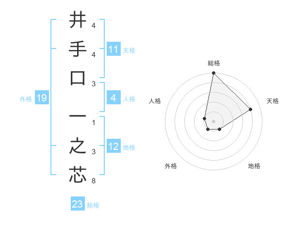 井手口 一之芯さんの総格は23画の5点!