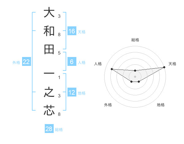 大和田 一之芯さんを姓名の画数から五運を鑑定