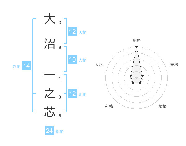 大沼 一之芯さんを姓名の画数から五運を鑑定