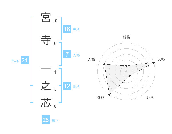 宮寺 一之芯さんを姓名の画数から五運を鑑定