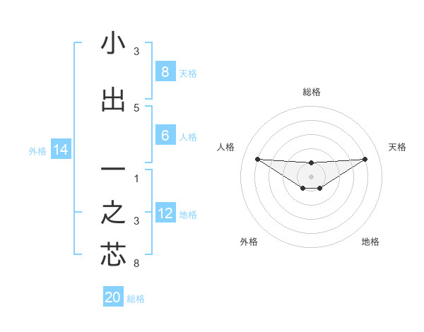 小出 一之芯さんの総格は20画の1点!