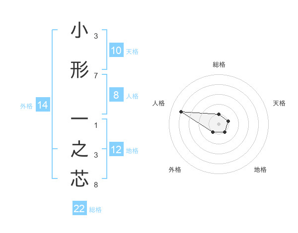 小形 一之芯さんの総格は22画の1点!
