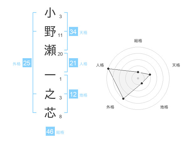 小野瀬 一之芯さんの地格は12画の1点!