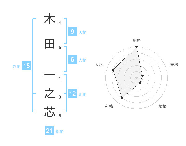 木田 一之芯さんを姓名の画数から五運を鑑定