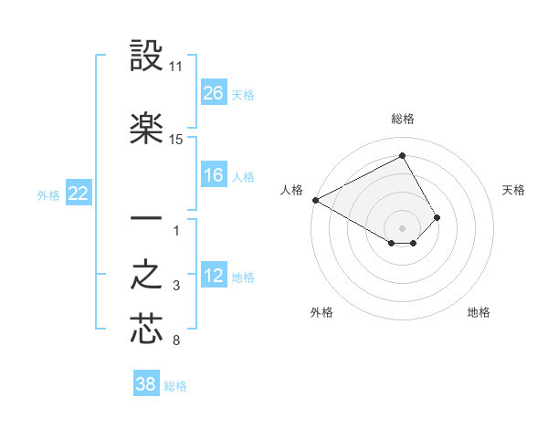 設楽 一之芯さんを姓名の画数から五運を鑑定