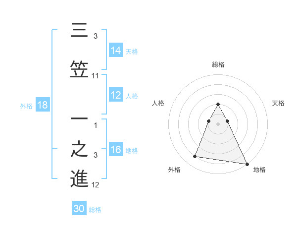 三笠 一之進さんを姓名の画数から五運を鑑定