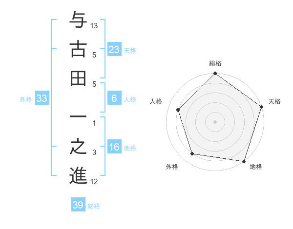 与古田 一之進さんの天格は23画の5点!