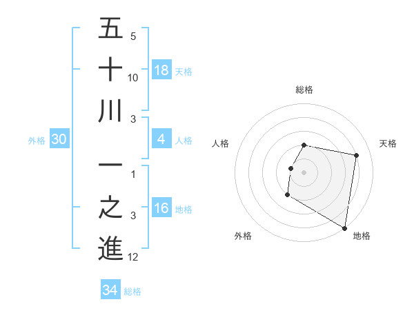 五十川 一之進さんを姓名の画数から五運を鑑定