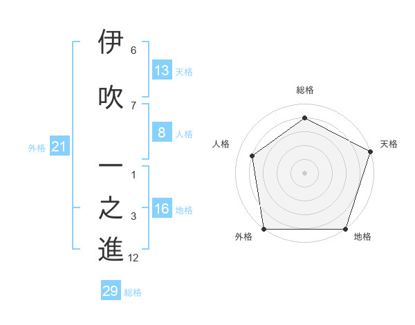 伊吹 一之進さんを姓名の画数から五運を鑑定