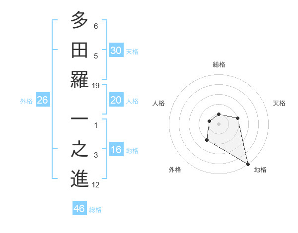 多田羅 一之進さんを姓名の画数から五運を鑑定