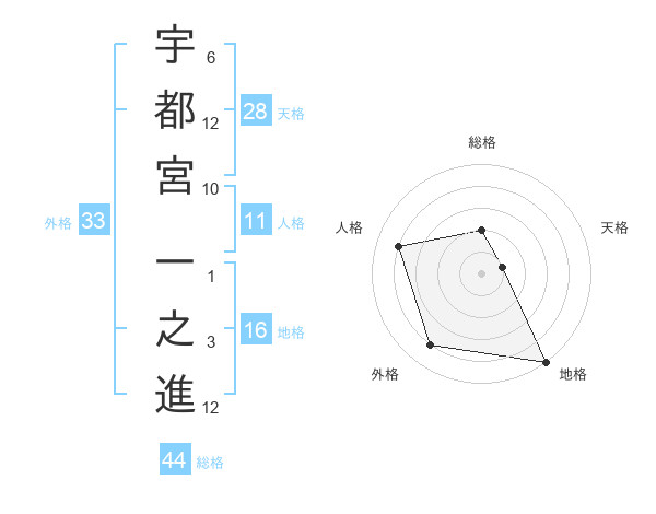 宇都宮 一之進さんを姓名の画数から五運を鑑定