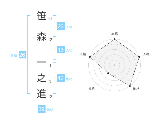 笹森 一之進さんを姓名の画数から五運を鑑定
