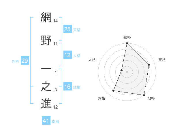 網野 一之進さんの総格は41画の5点