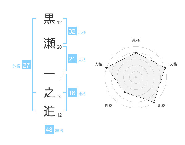 黒瀬 一之進さんの天格は32画の5点!