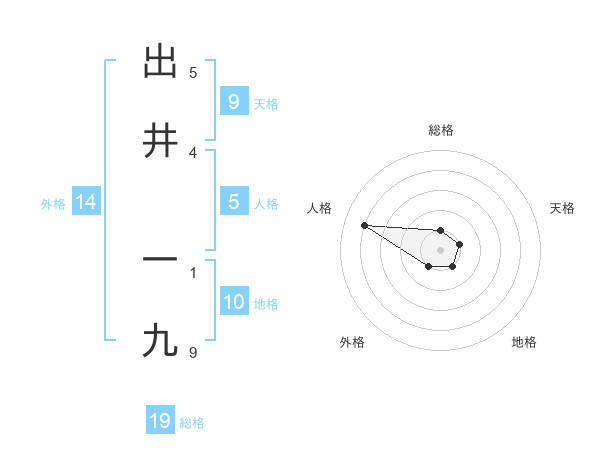 出井 一九さんを姓名の画数から五運を鑑定