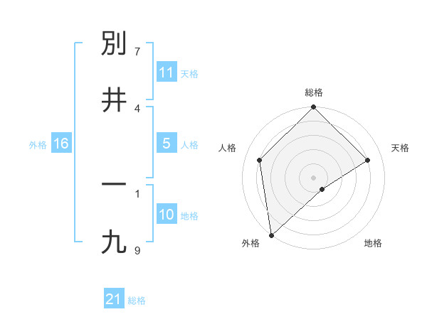 別井 一九さんの総格は21画の5点!