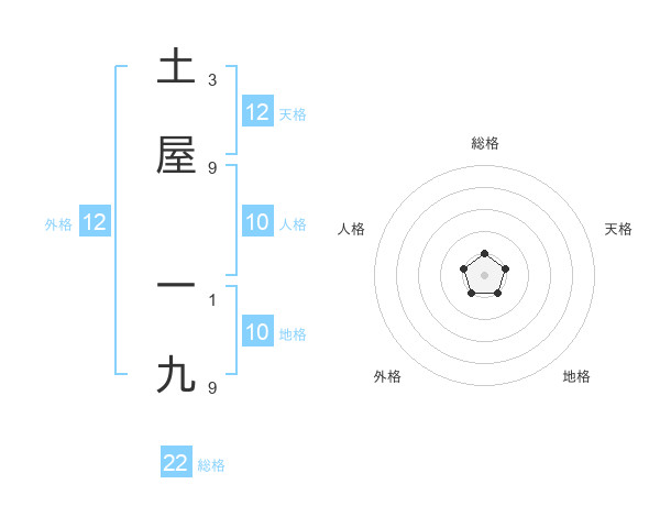 土屋 一九さんを姓名の画数から五運を鑑定
